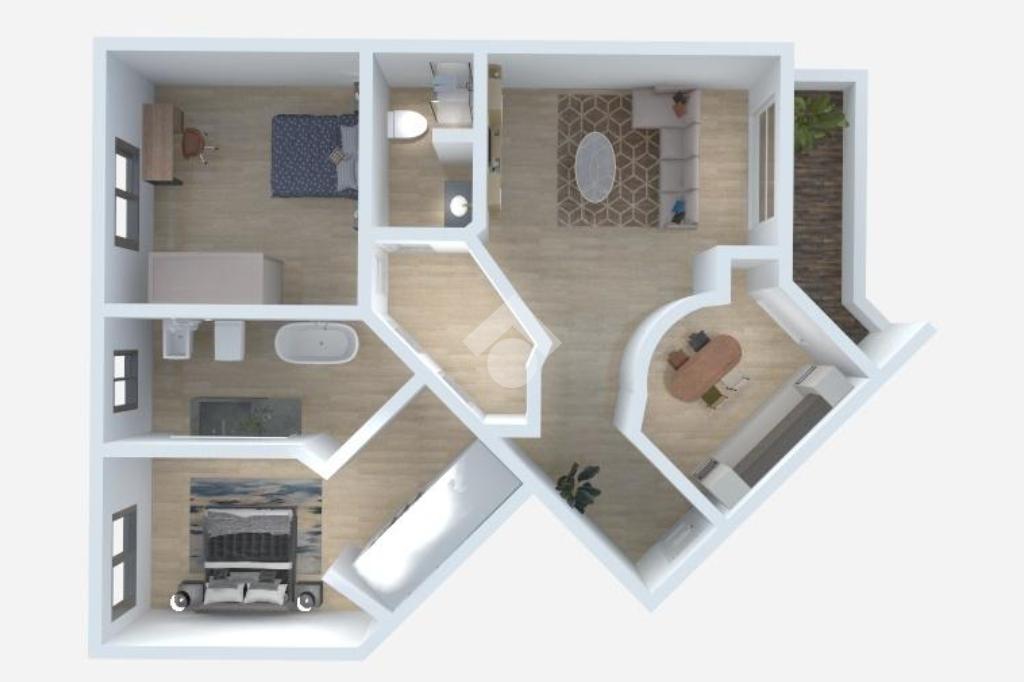 L’immobile, edificato negli anni 2000’, presenta un ingresso sul disimpegno dal quale si accede alla cucina abitabile, all’ampio e luminoso soggiorno, al bagno finestrato con vasca, alla camera, al secondo bagno cieco con doccia e alla camera matrimoniale.