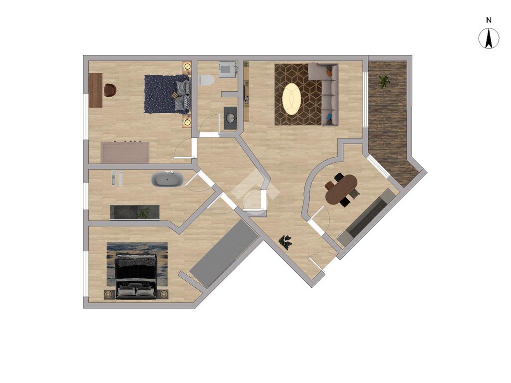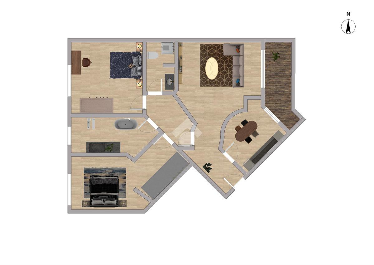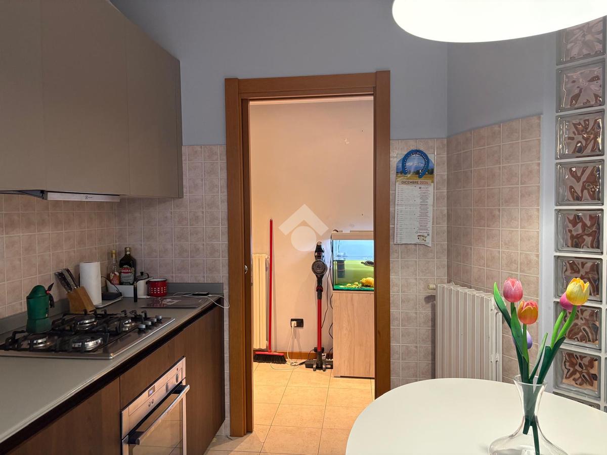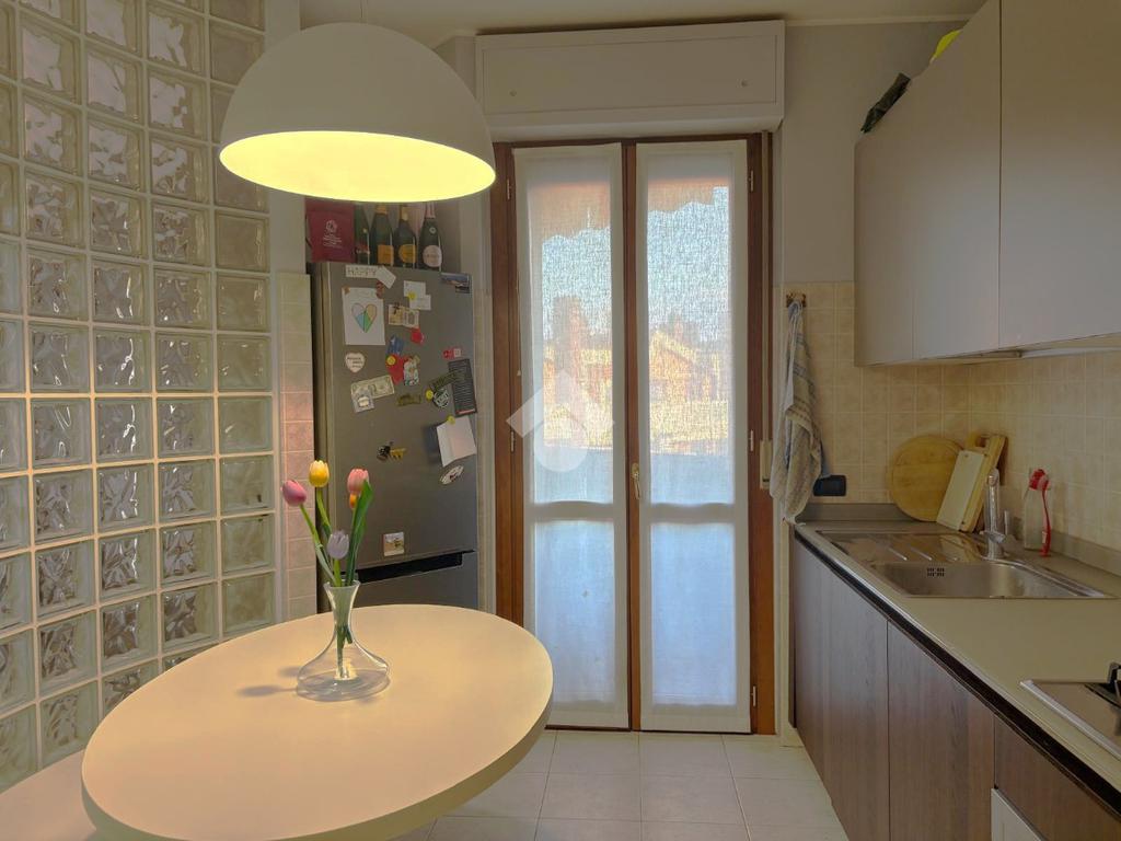 Una balcone con accesso sia dalla cucina che dal soggiorno impreziosisce la soluzione.
