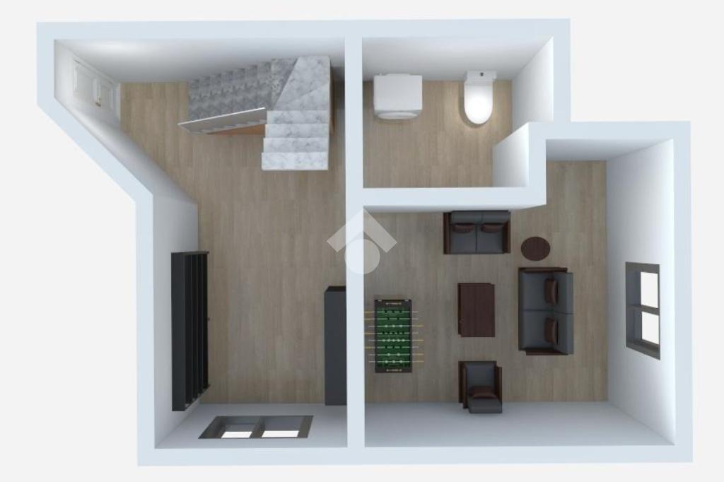 Tramite scala interna raggiungiamo la spaziosa taverna ed un ulteriore bagno finestrato servito da sanitari in ceramica e box doccia, fruibile anche come lavanderia.