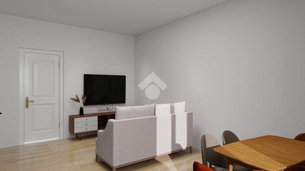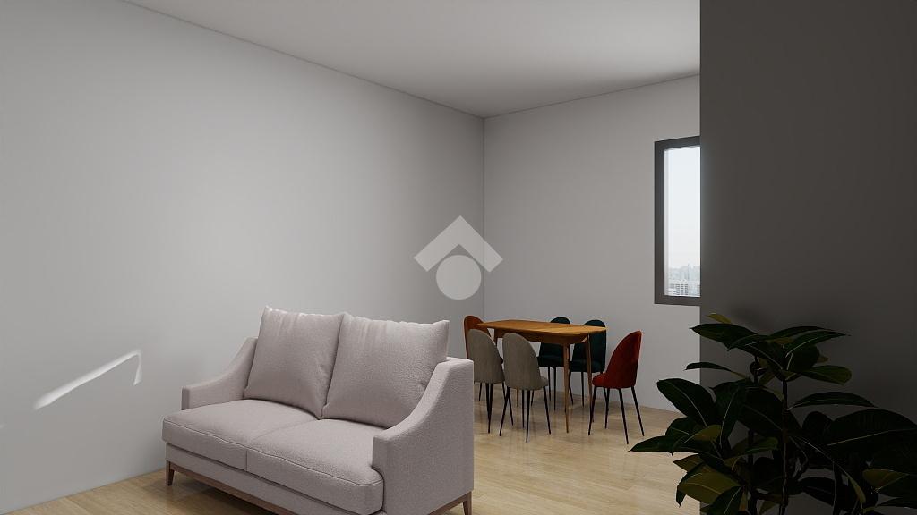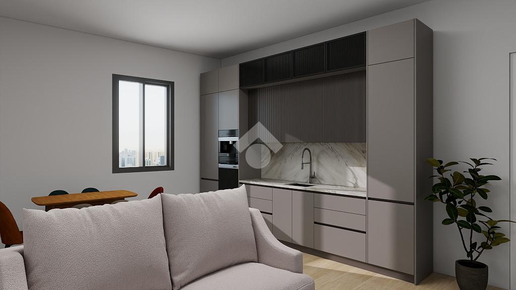 La soluzione presenta un ingresso sul soggiorno con cucina a vista.