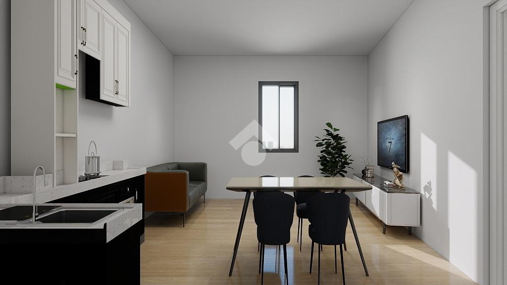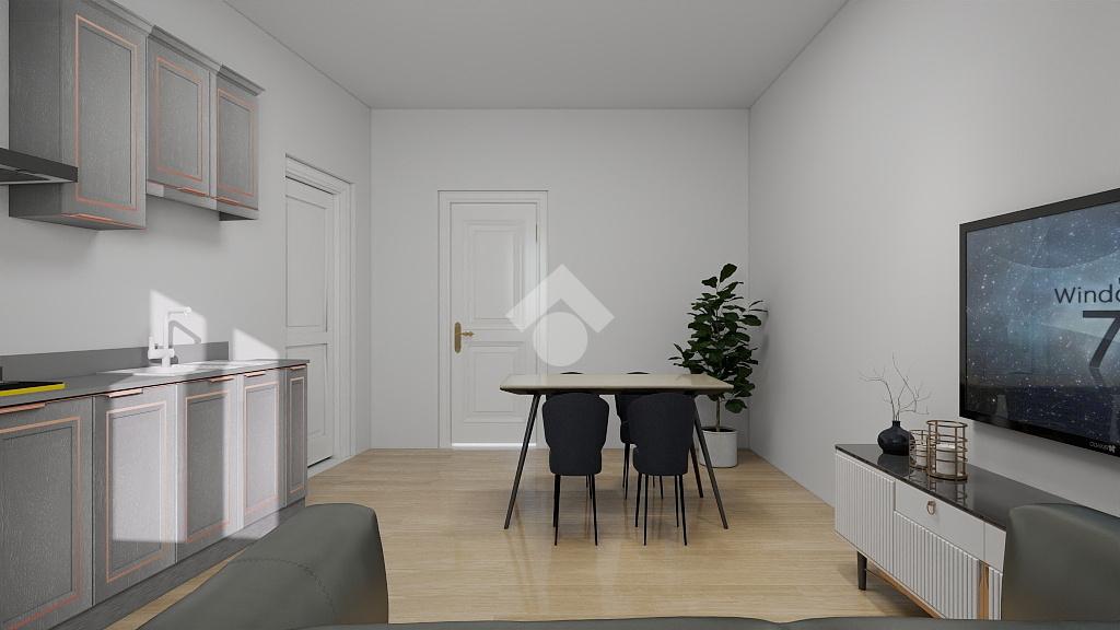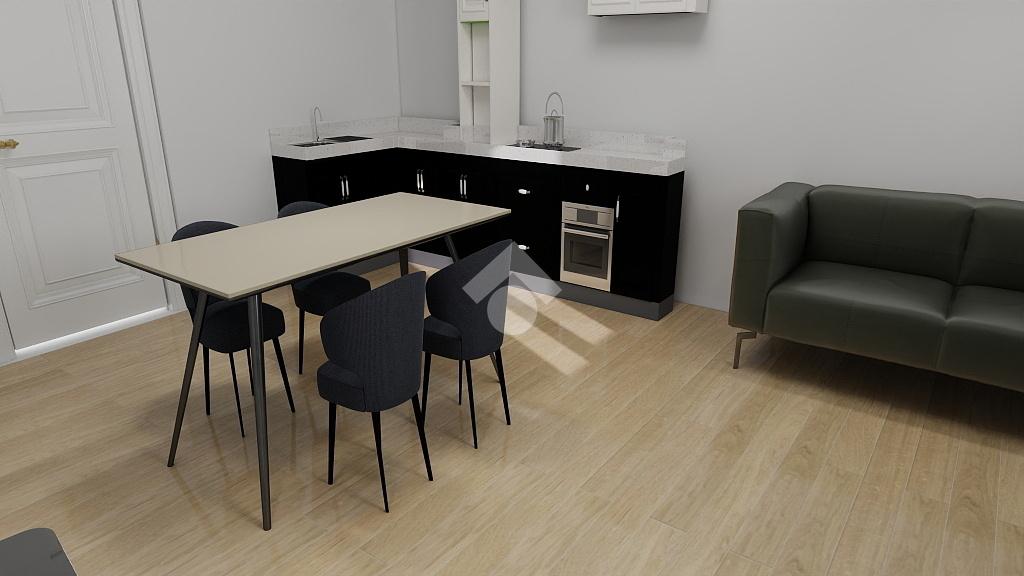 La soluzione presenta un ingresso sul soggiorno con cucina a vista.