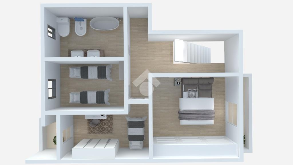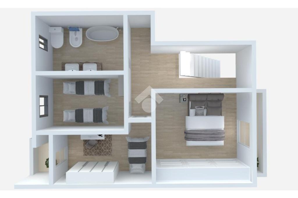 Una comoda scala in muratura divide la zona giorno dalla zona notte situata al primo piano e formata da tre camere di cui una matrimoniale ed un bagno finestrato con vasca.